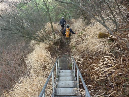 大混雑する山頂を脱出し、下山を開始する。