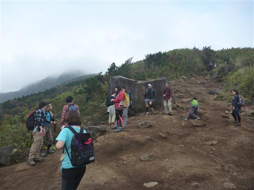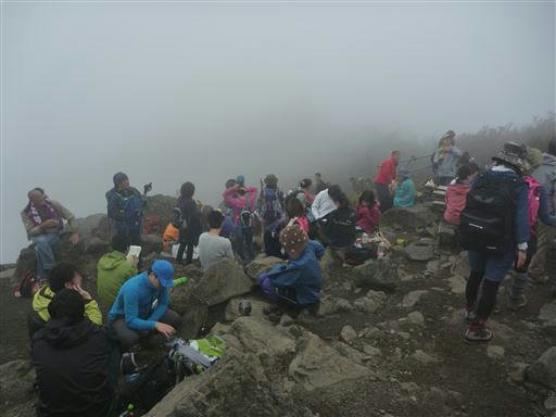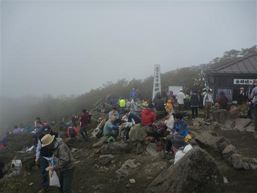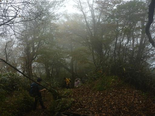 昼食をとったら早々に混雑する山頂を脱出する。この辺りはまだ雲に覆われている。