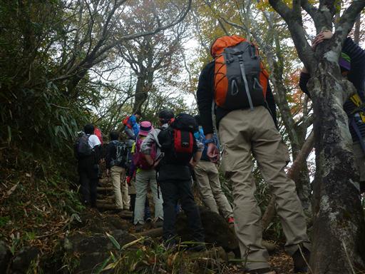 山頂に近づくと登山道が混雑してくる。