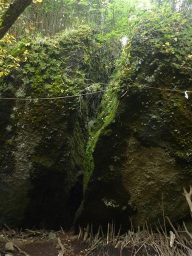 公時宿り石。2つに割れた大石だ。