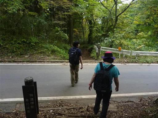 しばらく車道を歩くと登山道入口に到着する。