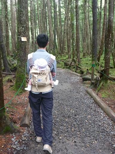 ベビーキャリアで背負って出発。