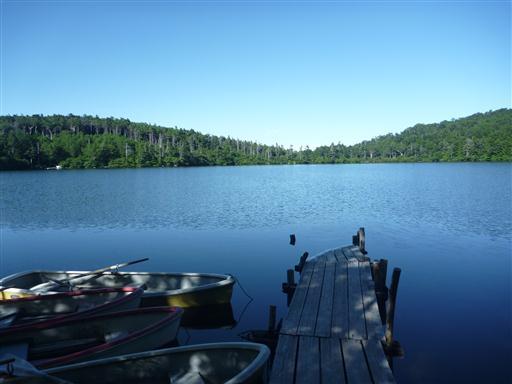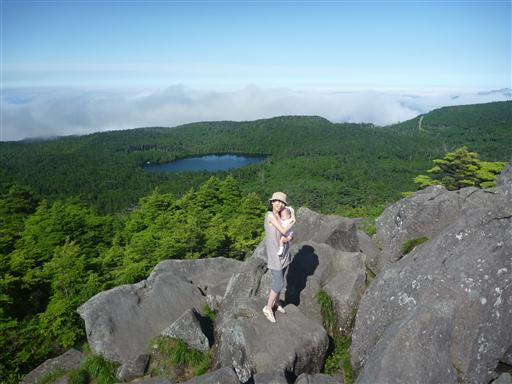 高見石からは眼下に白駒池が見渡せる。