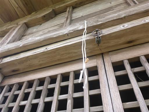 隣の建物の上からぶら下がっている紐に、なんとセミの抜け殻が付いている。