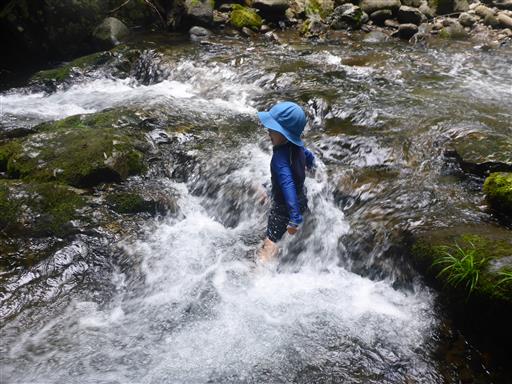 息子は流れが激しいところに果敢に挑戦している。寒くないのだろうか?