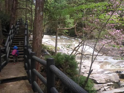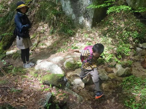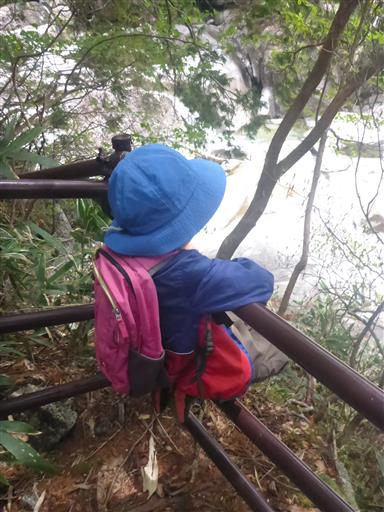 息子は滝が気に入ったようで、娘が先に行っても足を止めて眺め続けている。