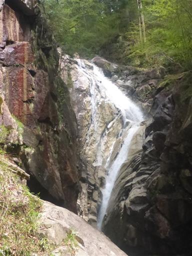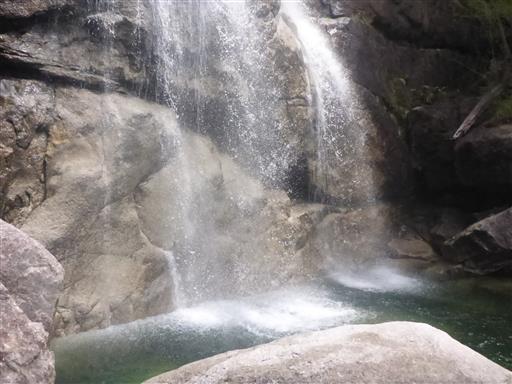 急な斜面を下りきると螺旋滝に到着する。