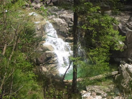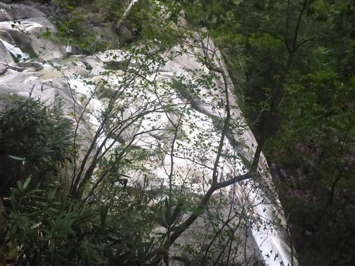 眼下に洗心滝が見える。最初は川から離れてずっと樹林帯歩きだったが、