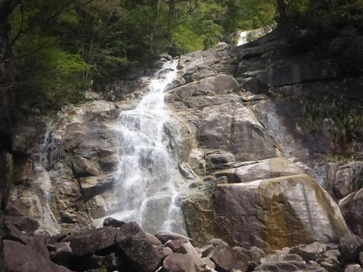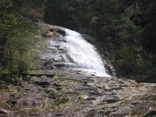 続いて不動滝に到着。こちらは水の流れが美しい滝だ。