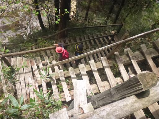 さらに先に進む。古くて壊れた階段の上に新しい階段が設置されている。