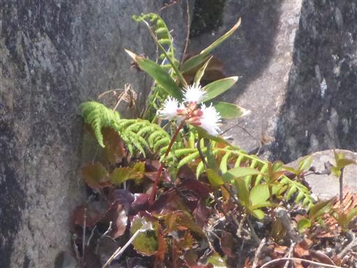 崖の縁にイワカガミの花が咲いている。
