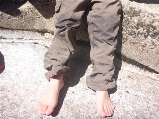 川に入るためまず靴を脱ぐ。