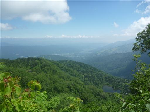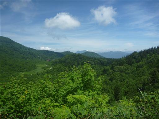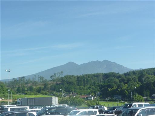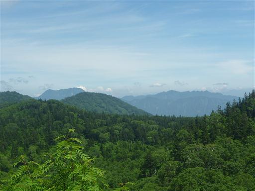 遠く戸隠連峰の山々が見えている。左が高妻山、右が西岳だ。