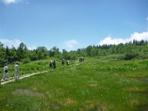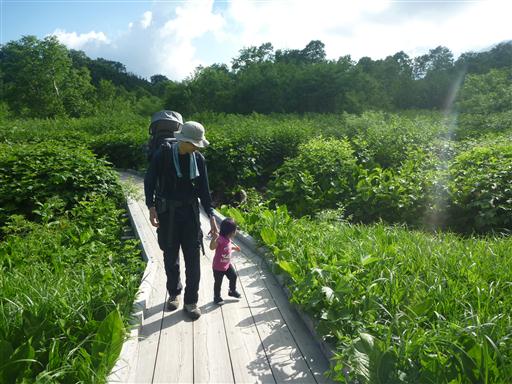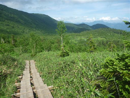 この辺りは高層湿原が広がっていて、散策用の木道が設置されている。