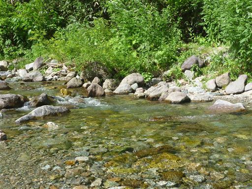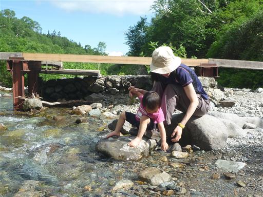 楠川を横切るところで河原に下りて少し遊ぶことにする。水は驚くほど冷たい。