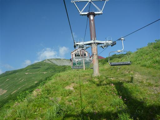 リフトを乗り換える。朝は下界から白馬岳が良く見えていたが、この辺りは雲に覆われている。