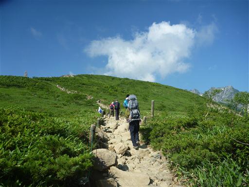 八方尾根を歩き始める。すでに森林限界を超えているため展望は非常に良い。