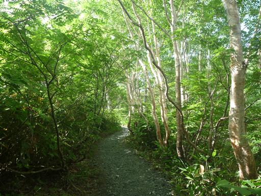 登山道は緩やかな尾根道から急斜面のトラバース道になる。