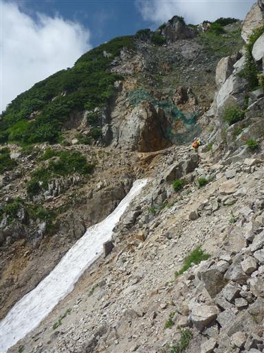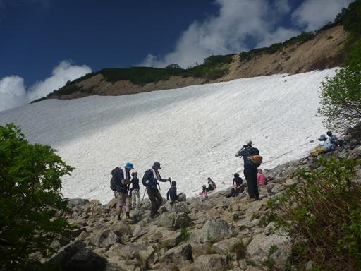 雪渓で一休みしたら唐松岳に向けて歩き出す。
