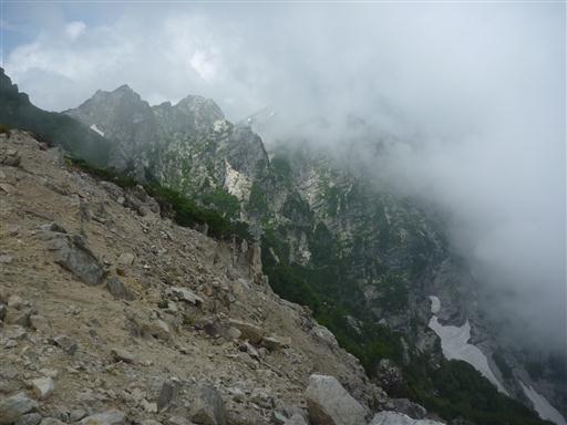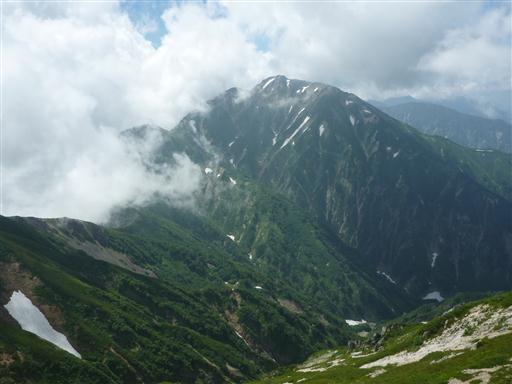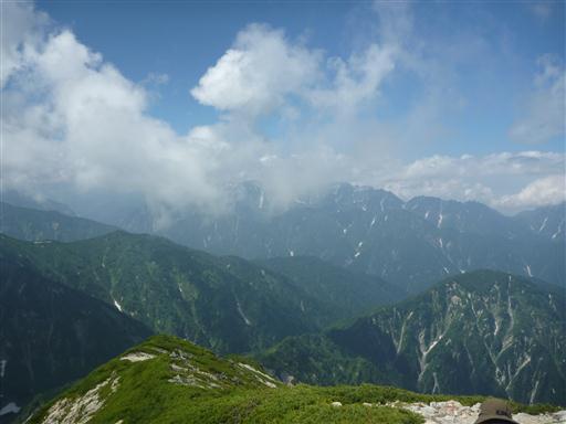 山頂では見えなかったが不帰嶮が雲の隙間からわずかに見える。