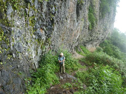 百間長屋と呼ばれる岩壁直下に付けられた道を歩く。
