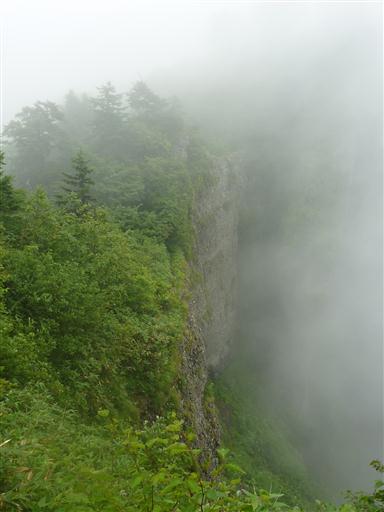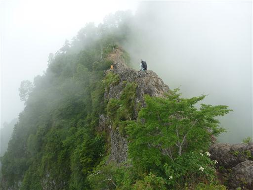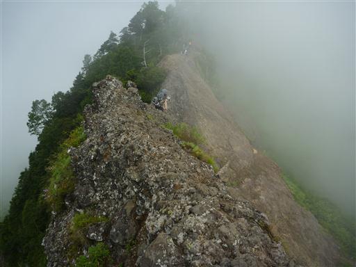 幅50cmの狭い岩稜が20m程続く。両側は100mを超える断崖絶壁だ。