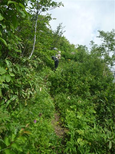 あとは戸隠山まで尾根道を歩くのみ。危険はないが案外藪っぽい道だ。