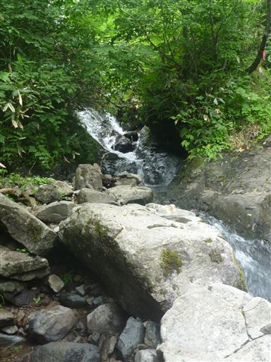 水量はだんだんと増えてくる。沢を何度か渡りながら下って行く。