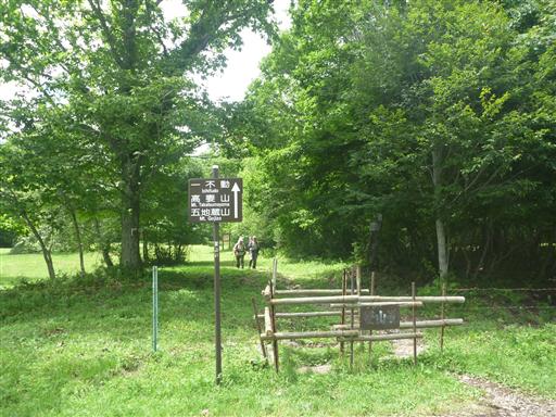 傾斜が緩くなってくると沢と離れ、牧場に到着する。