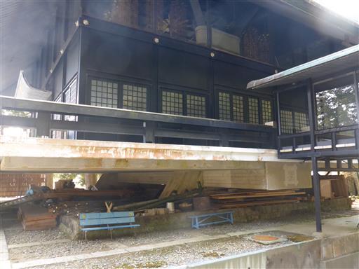 こちらは祖師堂。土台は真ん中のみで、両端は宙に浮いている。