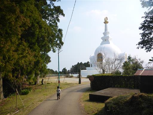 息子と見学に行くことにする。寺から5分程度歩くと、馬鹿でかい仏舎利塔が見えてくる。