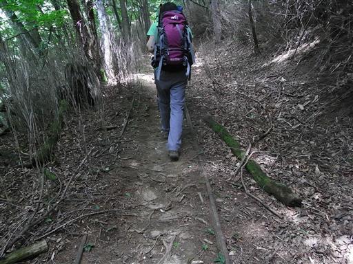 このあたりは昔、桂石が採れたらしく、それを運ぶためのレールが登山道に残っている。