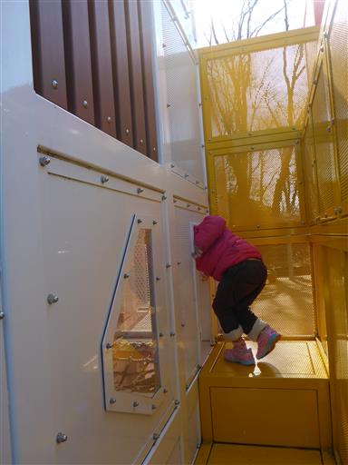 大人には狭すぎて、かなり移動しにくい。内部では上下移動があまりできず、