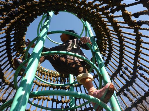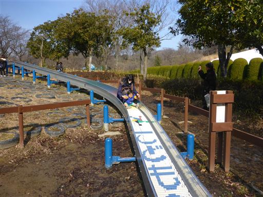 昼食をとったら、こどもの国で人気のローラーすべり台に行く。