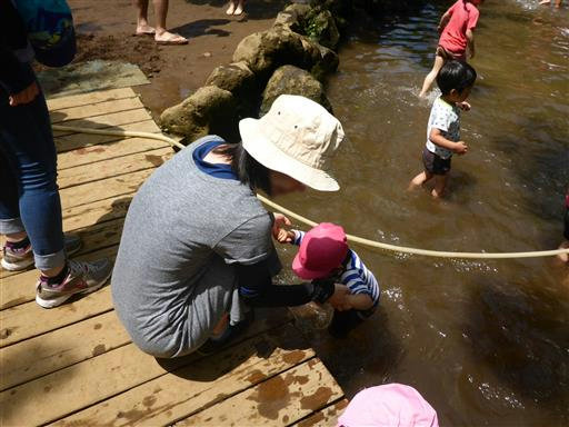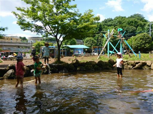 最初は怖がっていた息子も、慣れてくると水に入って遊びだす。
