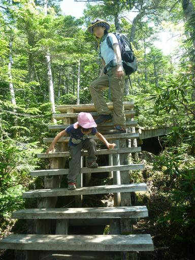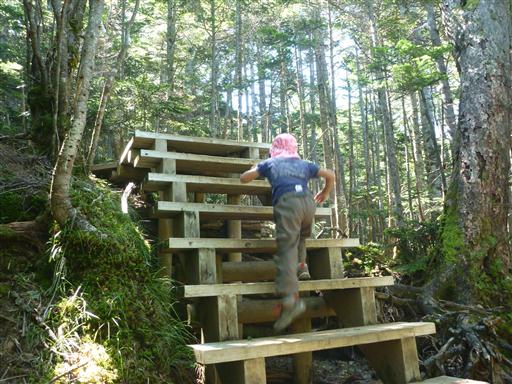 登山道はほとんど木の階段でできている。