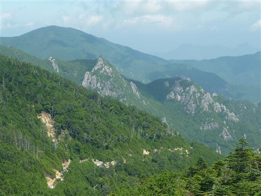 見えているのは奥秩父主稜の山々、奥に金峰山の五丈石が見えている。