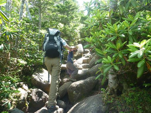 岩には裏側から回り込んで登ることができる。