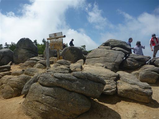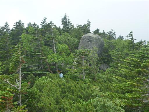 山頂標識から少し離れた場所に大きな岩がある。見渡したところ、この岩が一番標高が高そうだ。