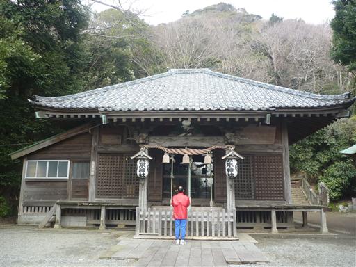 神社の奥から高麗山への登山道に入っていく。