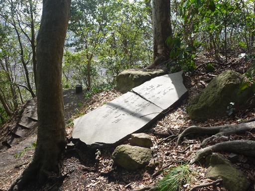 石碑が一枚倒れている。