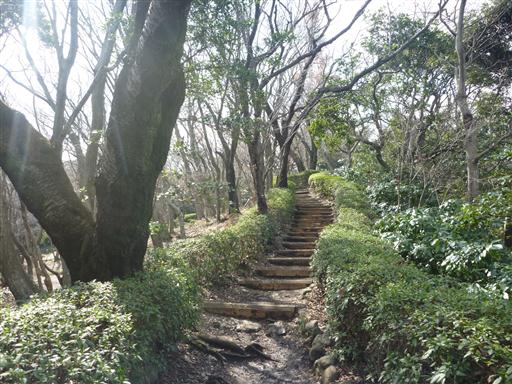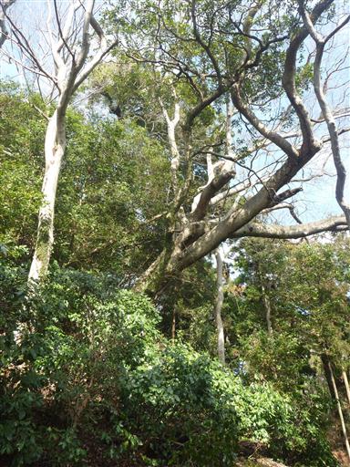 辺りは常緑広葉樹が生い茂っている。