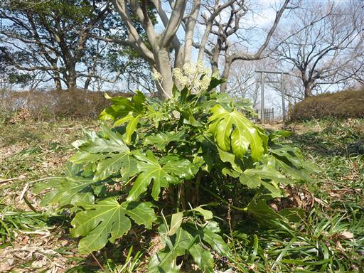 立派なヤツデの花が咲いている。