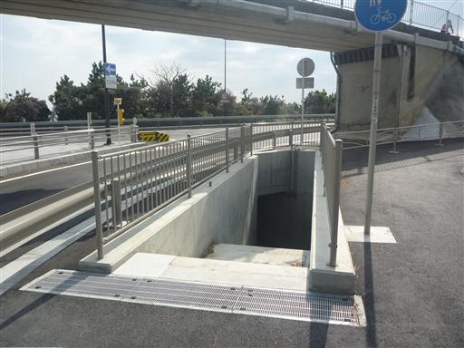 国道の下を通るトンネルに入っていく。