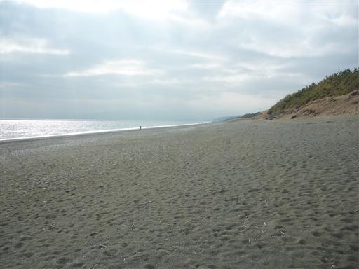 こゆるぎの浜。非常に長い砂浜だ。