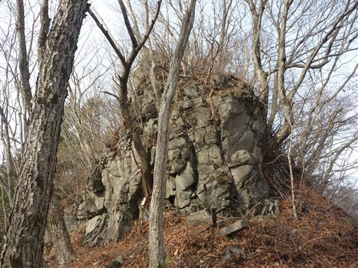 尾根をしばらく歩くと、大きな岩にたどり着く。