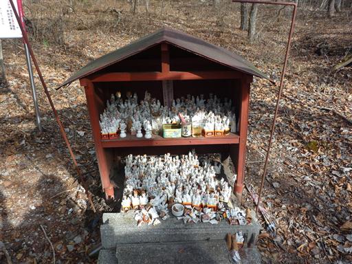 鳥居の奥には祠があって、狐の置物が無数に並んでいる。