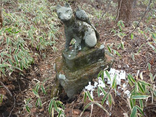 鳥居の足元には狐の狛犬が置かれている。かわいらしい狛犬だ。