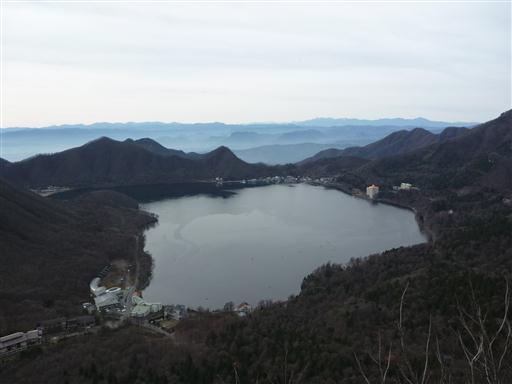 眼下に榛名湖と、その向こう側には妙義山や荒船山など西上州の山々、