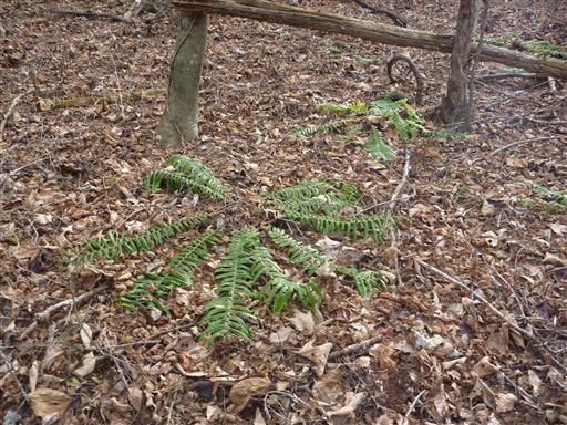 足元にすっかり元気を失ったシダ植物がだらっと寝そべっている。